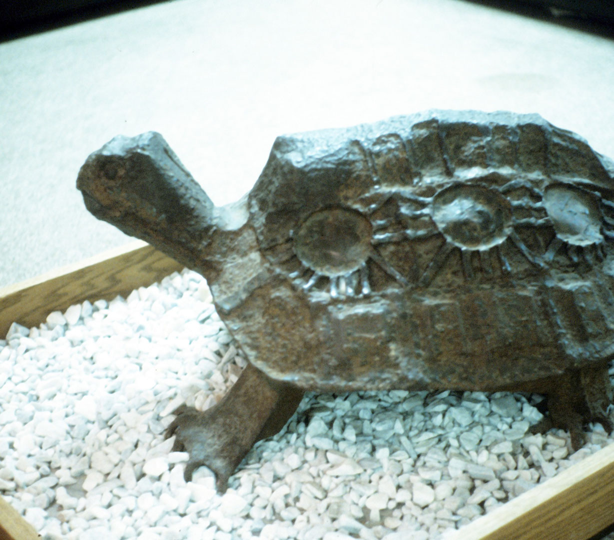 Endres was one of several mentors and patrons over the years, and he offered Gibson the key to his metal shop facilities in Kanawha City to work on his sculpture. With unlimited access to materials and equipment he would create many sculptures there, such as the ‘Turtle’ and the Lewis Chevrolet sculpture. He also refined his welding skills by working with many different metals.